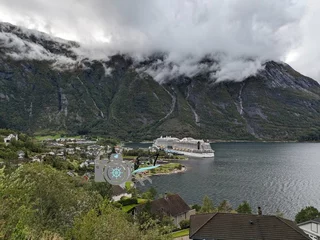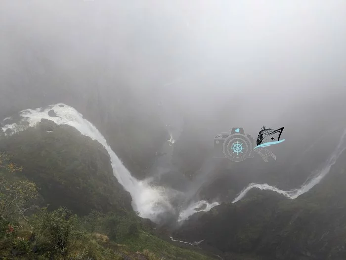 mit einem Seetag ging es von Trondheim nach Eidfjord. Schon mit dem ersten Morgenlicht standen wir auf dem Balkon und genossen die Fahrt durch die Fjorde und unter der Hardangerbrücke hindurch. Angelegt in Eidfjord gingen wir vom Schiff in das Dörfchen und fanden auch direkt die Bushaltestelle. Wir hatten über Get your Guide Tickets vorab gekauft und eine Tour zum Wasserfall Voringsfossen mit 1,5 Std Aufenthalt am Wasserfall gebucht. Viele Ausflüge haben leider nur kürzer Aufenthalte dort. Leider war das Wetter nicht so schön, es war regnerisch, nass, windig und die Wolken hingen in den Tälern des Wasserfalls. So konnte man es leider nicht lange draußen aushalten und wir tranken in dem Hotel Fossli einen warmen Kakao. Zurück am Schiff kauften wir uns Tickets für die Trollbahn und schlenderten in der Wartezeit im Ort umher. Mit dem Trollzug waren wir dann ca 1 Std unterwegs, erst fuhren wir über den Eio und den Berg hoch und sahen die alten Grabhügel so wie ein Fotostop mit toller Aussicht auf den Fjord und das Schiff, dann fuhren wir zurück und in die andere Ecke des Ortes zur alten Kirche.