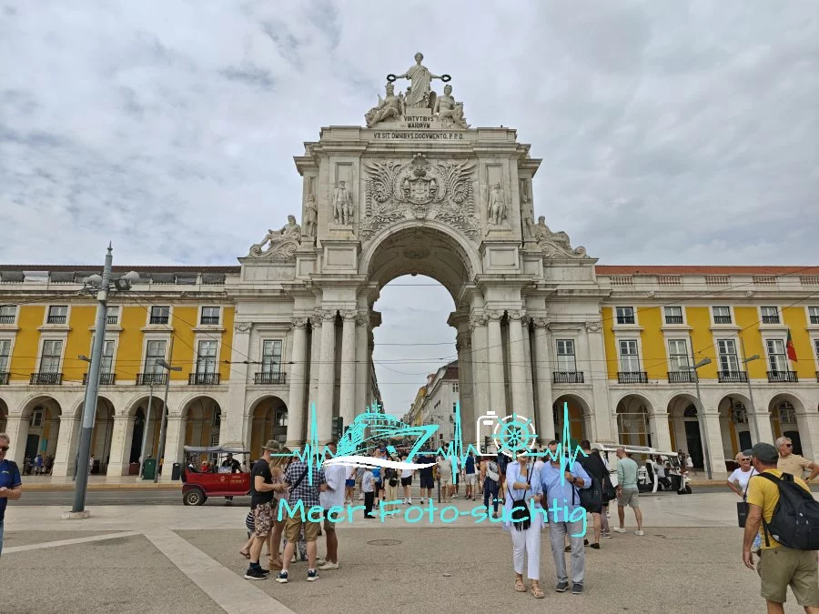 in Lissabon lagen wir am Terminal de Cruzeiros de Santa Apolónia (TPSA). Hier hatten wir einen Ausflug "Lissabons Highlights" über Meine Landausflüge gebucht. Da wir im Gewimmel der Kreuzfahrer, es lag noch die Norwegian Jewel neben uns, den Guide nicht gefunden haben, wurden wir per Handyanruf zum Treffpunkt gelotst. Unser Guide Kathrin hat uns auf der Tour sehr viel über das Leben in Portugal erzählt. Erster Stop war Belem mit dem Torre de Belem. Leider war er eingerüstet und so nicht sehr sehenswert. Weiter ging es zum Seefahrermonument Padrão dos Descobrimentos. Hier erklärte sie uns die Landkarte vor dem Denkmal und die Personen auf dem Denkmal. Zu Fuss ging es durch einen Fussgängertunnel zum Kloster Mosteiro dos Jerónimos und auch hier erklärte sie uns die Darstellungen an der Fassade. Weiter ging es mit dem Bus durch die Stadt zum nächsten Stop - dem Edward VII’s Park. Wieder im Bus fuhren wir zum Praça dos Restauradores und liefen zum Rossio. Dort hatten wir etwas Freizeit bevor wir zu Fuss die Rua Augusta hinunter zum Praça do Comércio liefen und von dort zum Kreuzfahrtterminal.